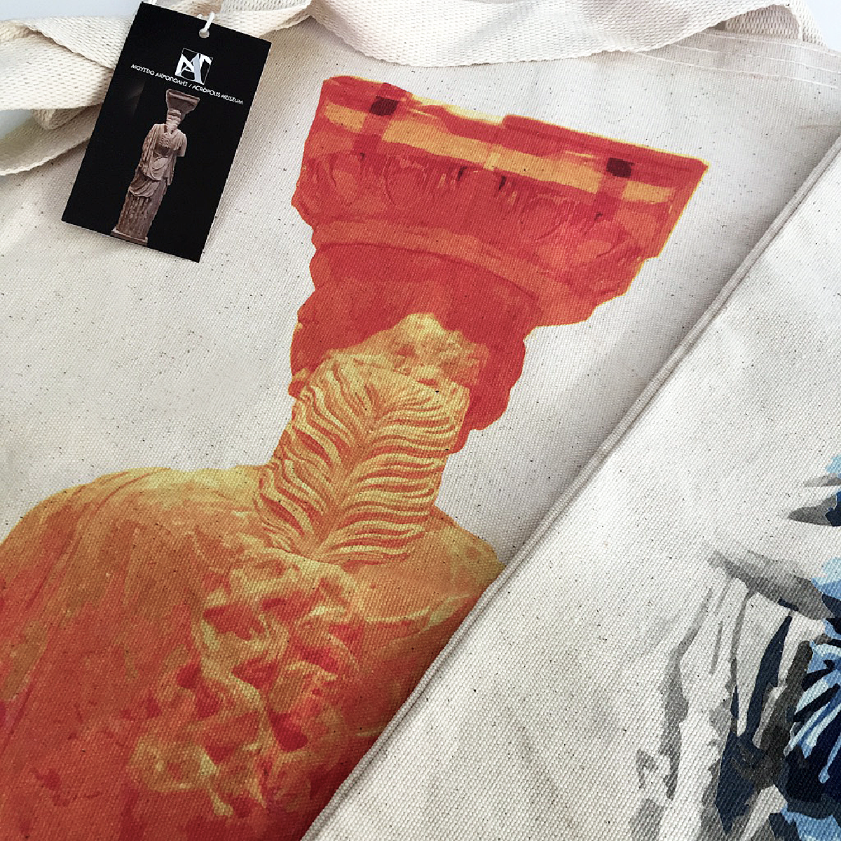 Tote handbags inspired by the acropolis museum exhibits. Sold exclusively in the museum store.