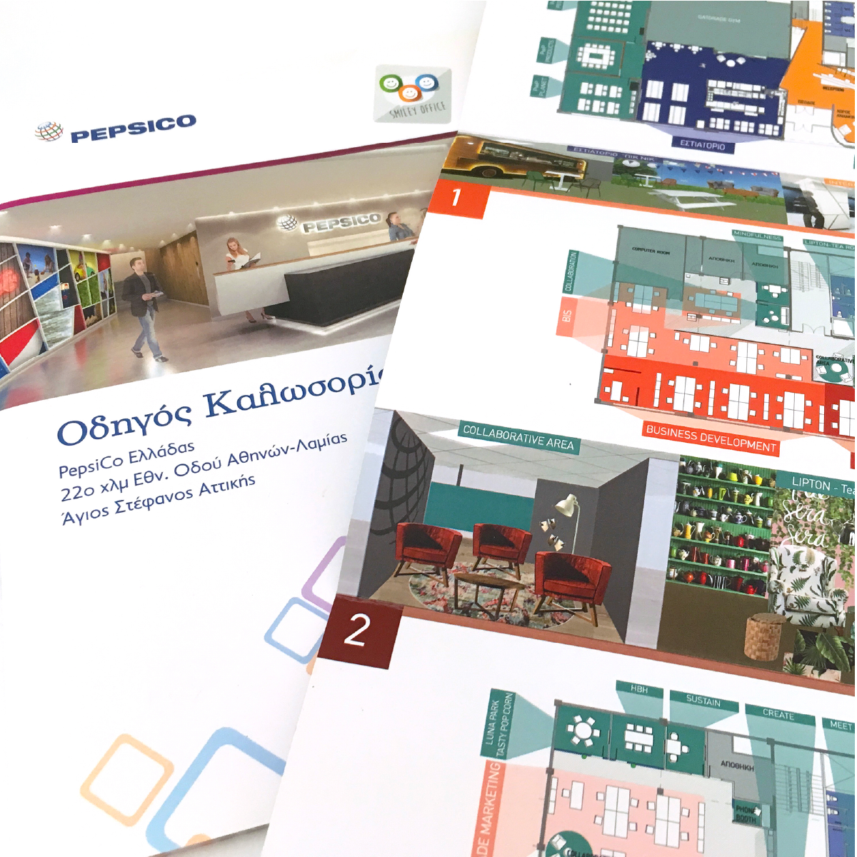 Renovation of Pepsico's offices, creation of an open work environment redesign of meeting rooms, and signaling of the whole building.